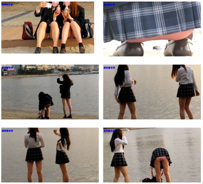 海にいた激ミニスカ制服女子を写撃