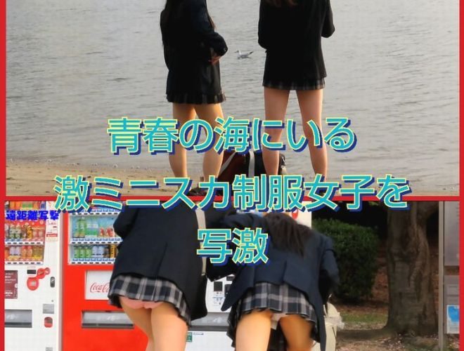 海にいた激ミニスカ制服女子を写撃